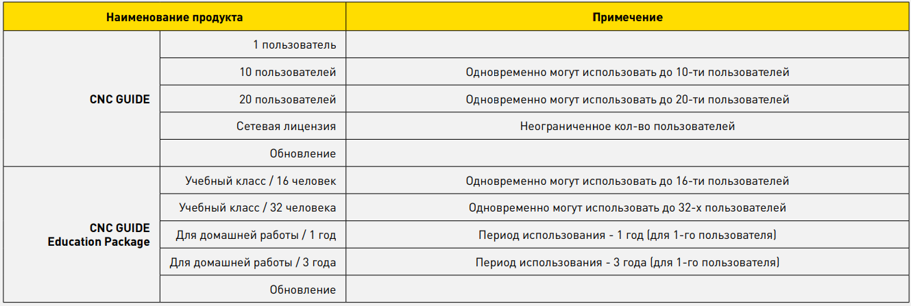 CNC GUIDE поставляется с однопользовательской или многопользовательской лицензией (10, 20 или неограниченное кол-во пользователей). Рабочие станции (ПК) могут работать с CNC GUIDE при наличии подключения к серверу. Данное решение идеально подходит для использования в специальных учебных помещениях, или, например, для команды разработчиков.