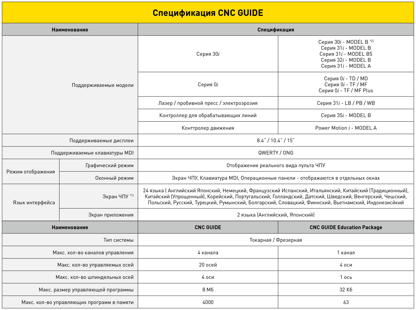 Функции Функции CNC GUIDE для производителей оборудования