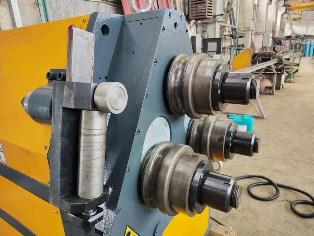 Принципработы: давление создаётся гидравлическим цилиндром, который перемещает рабочие ролики или пуансон, изгибая металл.