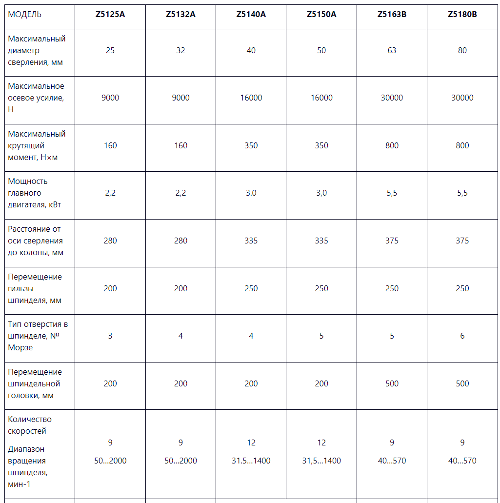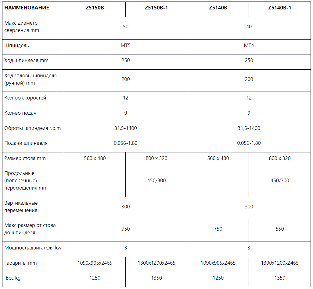 Станок модели Z5140B имеет усиленный шпиндель, что позволяет осуществлять сверление специальными сверлильными головками на 2 и более инструмента. Центробежная фрикционная муфта обеспечивает защиту главного привода от перегрузки крутящего момента.