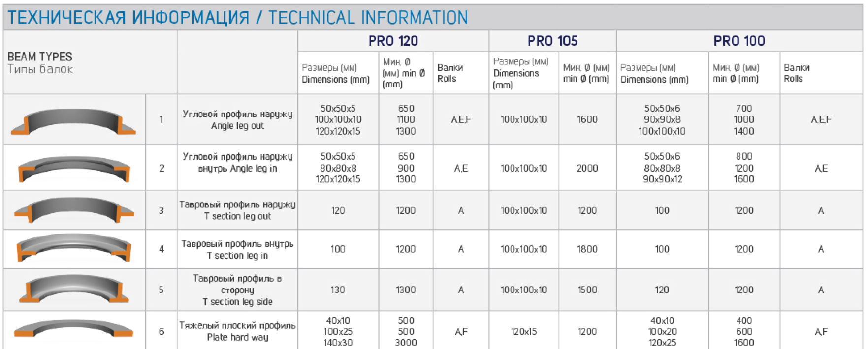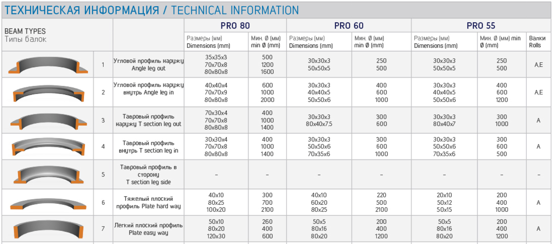 Станки могут оборудоваться стандартными и специальными гибочными роликами и аксессуарами для гибки уголка. Наиболее крупные модели, PRO 80-120, оснащаются ЧПУ, могут выпускаться в исполнении для гибки в горизонтальной и вертикальной плоскости. В качестве опции модели PRO 80-100 могут оснащаться гидравлическими направляющими роликами (по бокам от основных гибочных), имеющими 2 оси перемещения (на PRO 120 это оборудование — стандартное). Модели PRO 100-120 имеют закаленные гибочные ролики.