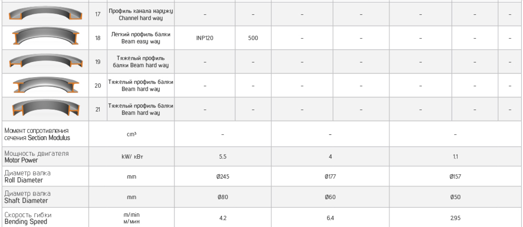 - Двигатель обладает рекордной мощностью до 15 кВт, обеспечивая изгиб крупногабаритных профильных элементов.