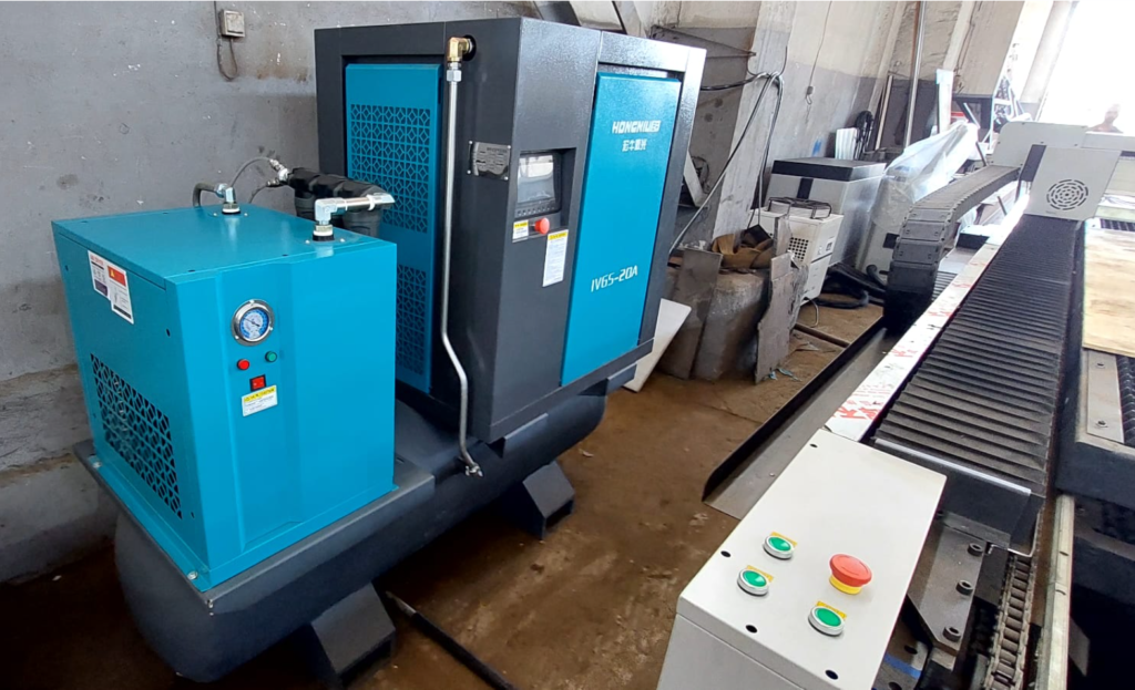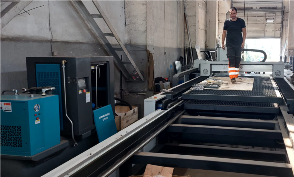 Квалифицированные техники провели полный монтаж оборудования, включая сборку всех составных частей и тщательное выставление станины станка по уровню. Также была выполнена установка и подключение силовой части, а также компрессора для подачи сжатого воздуха, что является критично важным для работы лазерной установки.